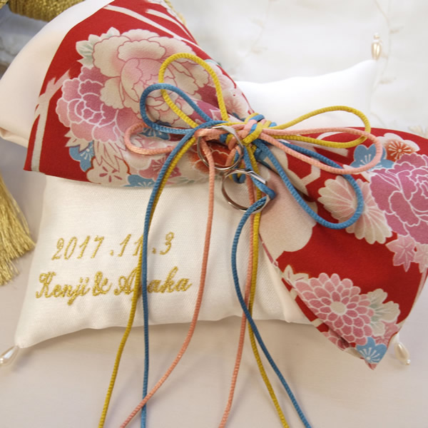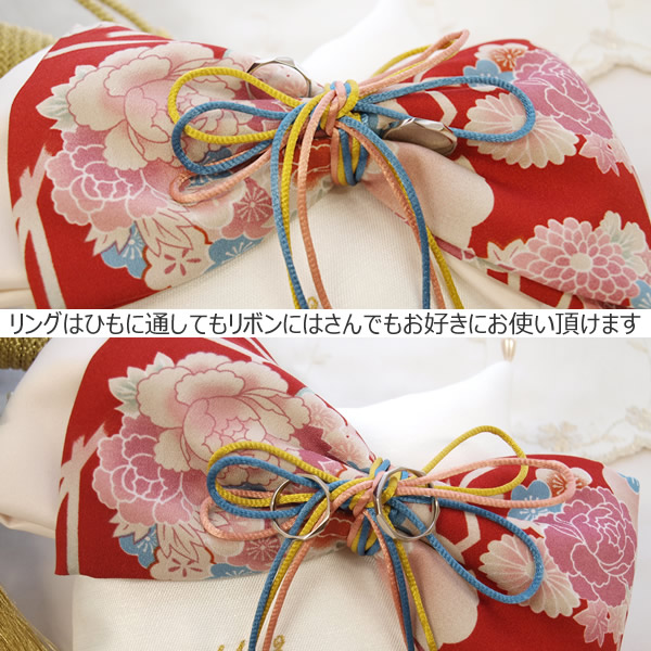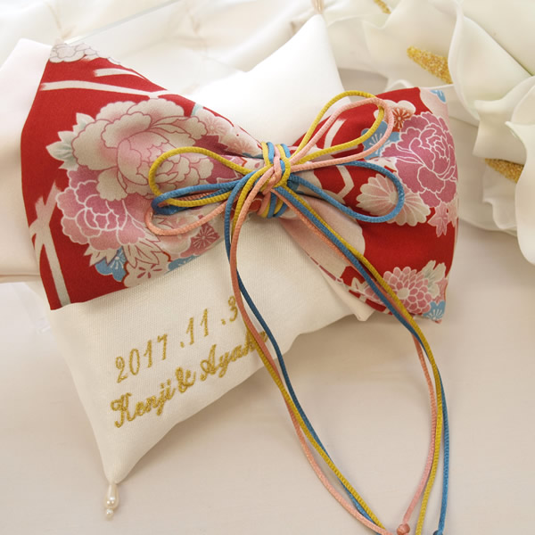 古典柄模様のリボンをアレンジした和風リングピロー。