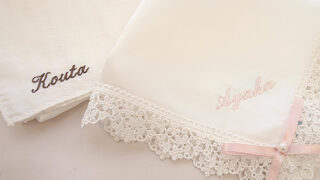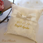 リング置きのパールモチーフで上品にまとめて、大人可愛いリングピローに仕上げました。