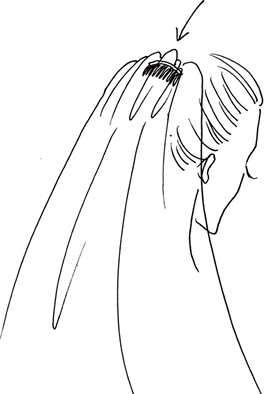 ③コームの盛り上がった面にベールの生地が乗る形になります。