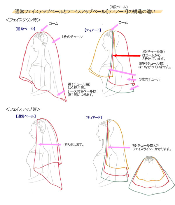 当店の3段ベール【ティアード】は通常ベールとは違う構造になっております。