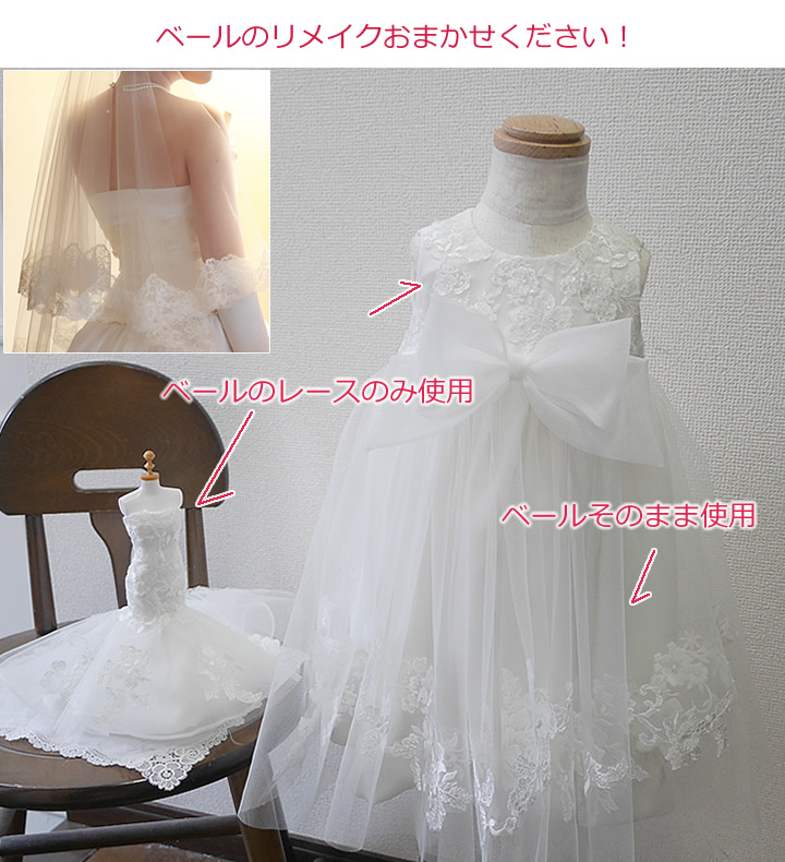 ベビードレスをお子様用のワンピースに、などのリメイクご依頼もございます。