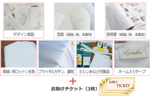 縫い方の説明書もお一人お一人にお作りする完全オリジナルのドレスセットです。