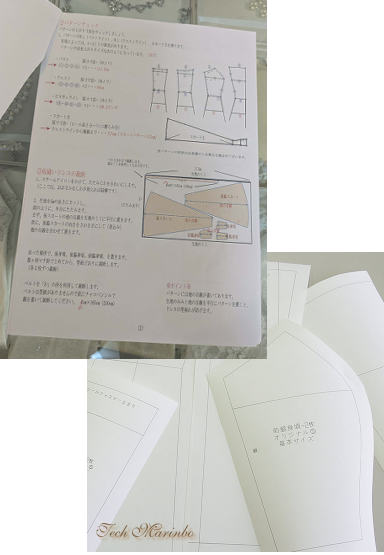 仮縫いドレスのチェック後、型紙の補正に入ります。本番用の説明書の製作に入ります。
