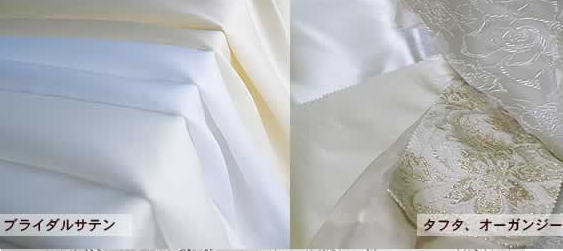定番ブライダルサテンの他、デザインに合わせて生地もお選びいただけます