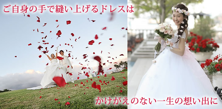 ご自身の手で縫い上げる世界にひとつのウェディングドレス作りはご結婚前の素敵な思い出となる事でしょう。