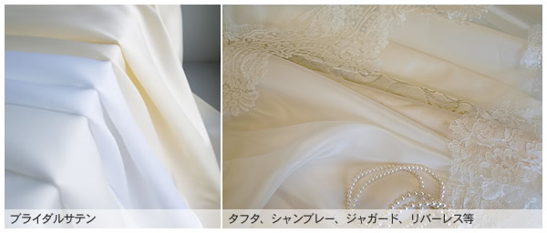 ドレスのデザインに合う生地を数百種類の中からセレクトしてご提案させて頂きます。