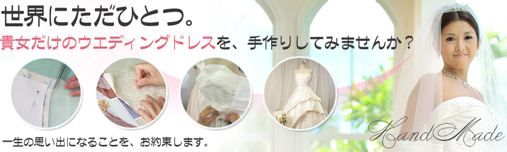 ご自身の手で縫い上げる世界にひとつのウェディングドレス作りはご結婚前の素敵な思い出となる事でしょう。