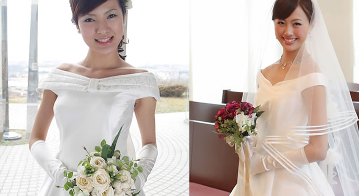 真っ白なドレスなのかオフホワイトなのかアイボリーなのか良く 確認して下さいね。