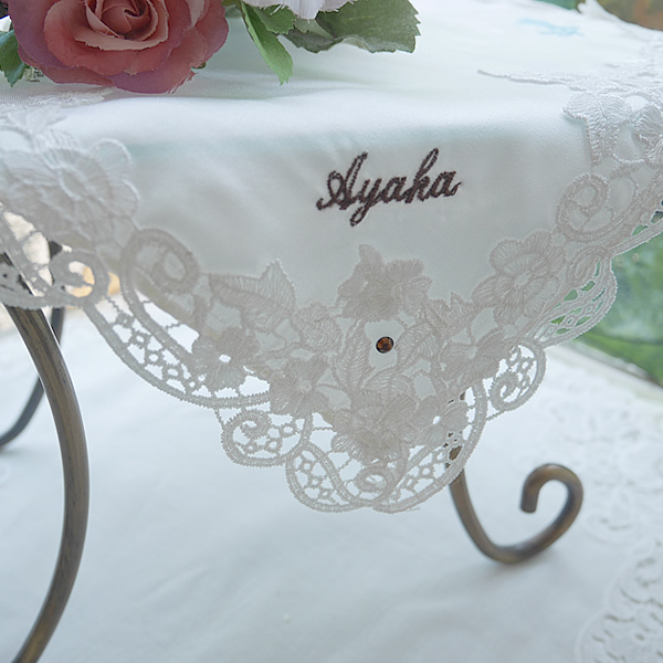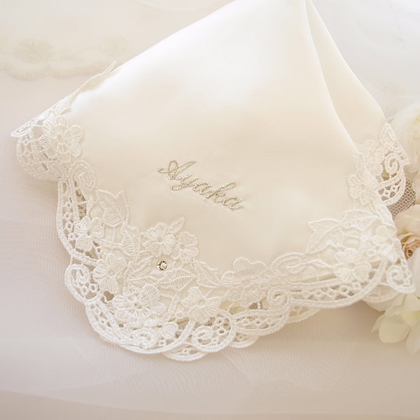 お名前やイニシャルの入ったオリジナルの花嫁ハンカチは、ご結婚の贈り物にも最適です。