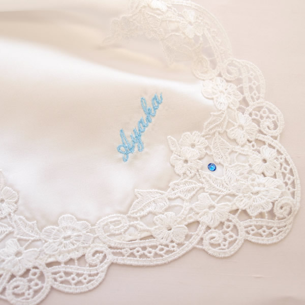 レディースのハンカチには優雅なケミカルレースとラインストーンを施して華やかに。