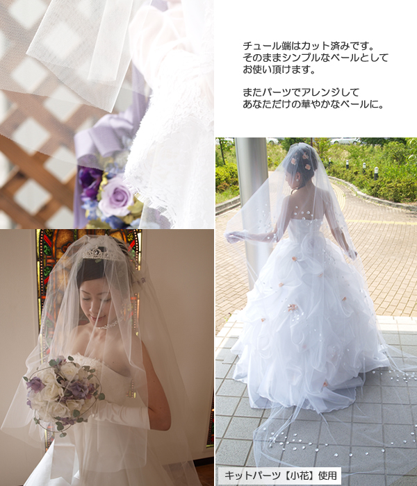※チュール端をレースで装飾出来る【レース付き手作りキットベール】もございます。