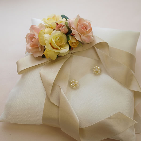 優しい色合いのピンクとイエローのバラのシルクフラワーをセットにしました。