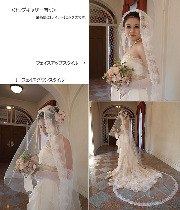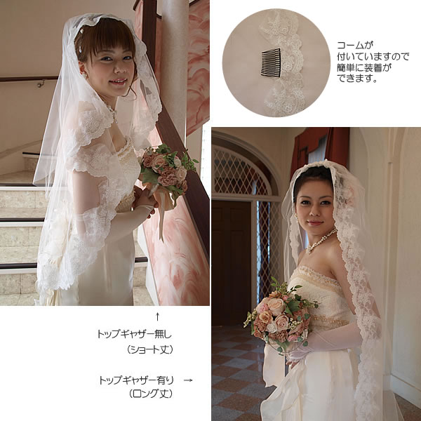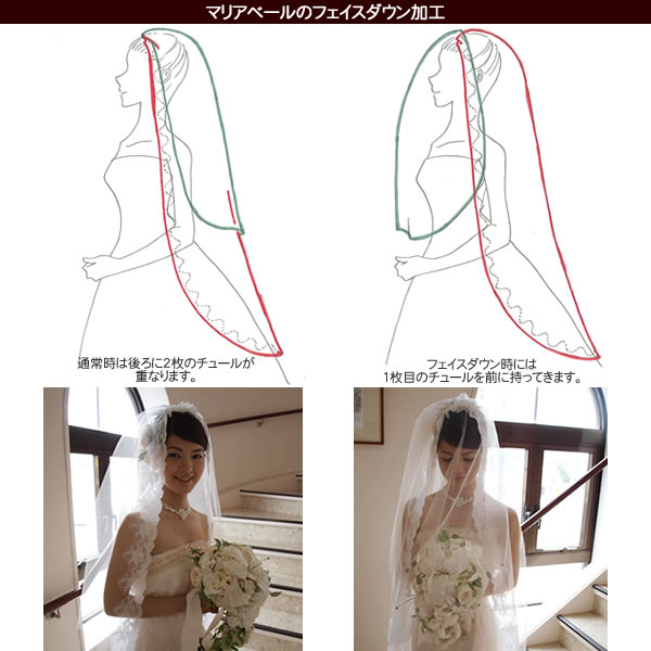 ベールダウン、ベールアップが出来るマリアベールに加工してお作りします。