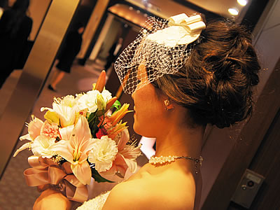 流行もあったのかもしれませんが、今まで招待された結婚式の花嫁さんは全員生花をあしらったスタイルで、とても素敵だったけど私の番が来た時点でもうネタバレだよな~。と思い