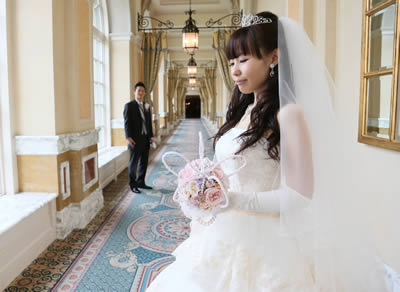 最初、ラメ入りの生地で幅広のロングベールを作って欲しかったんですが
