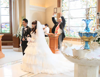 雨は止み風も弱くなり、晴れ間も見え無事に挙式することができました!