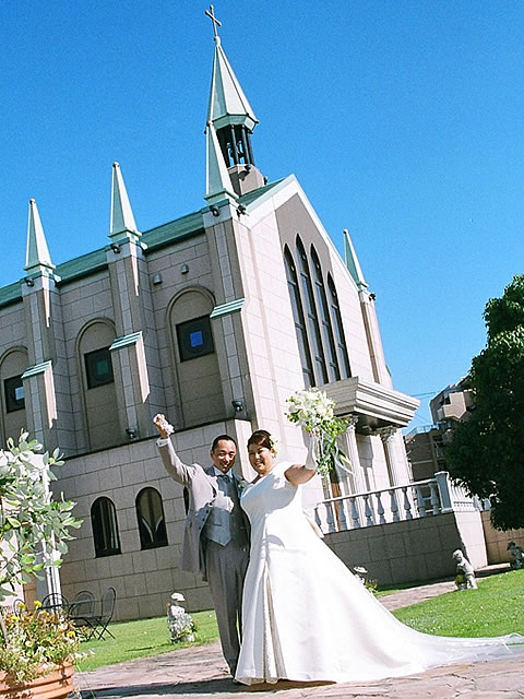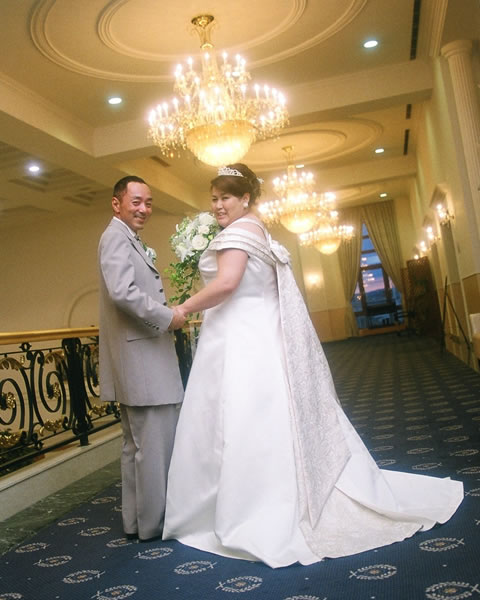 7月の下旬の結婚式当日は、猛暑にもかかわらず、軽くて涼しいドレスを作っていただきました。