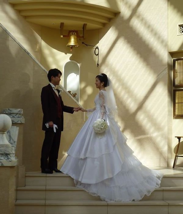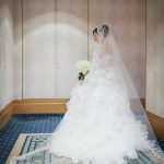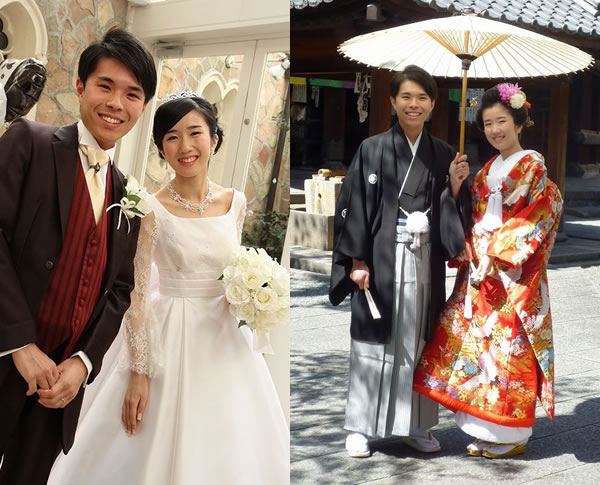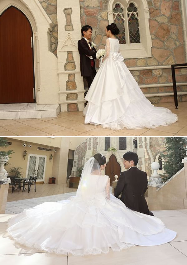 前撮り(ベールがある方)と挙式当日のドレスの写真を数枚と、一緒に和装の写真もお送りいたします。