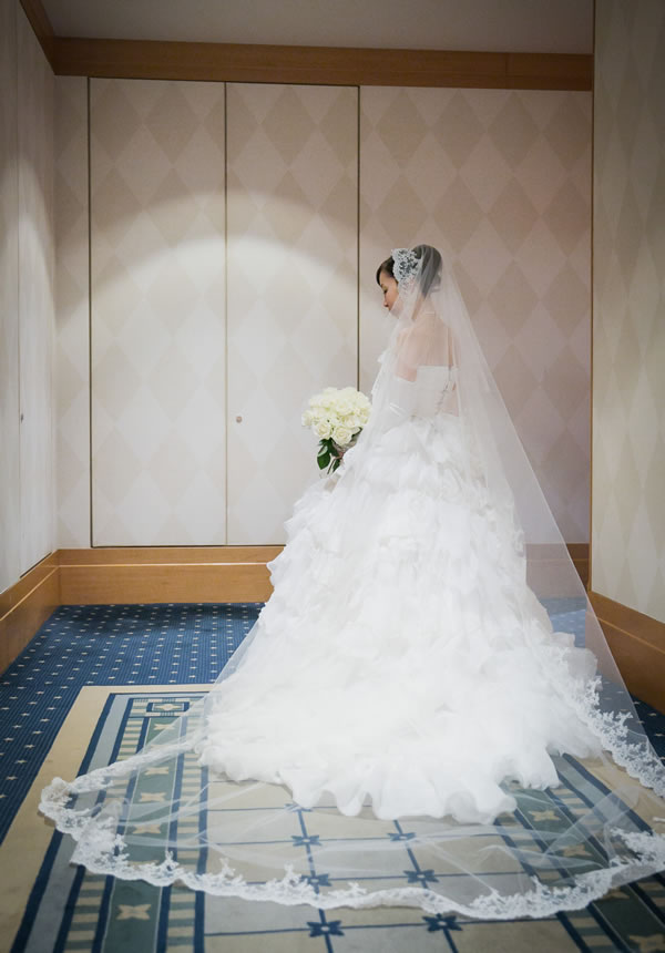 中でも、顔周りが華やかに見え、後姿もとても綺麗なベールを選びました。