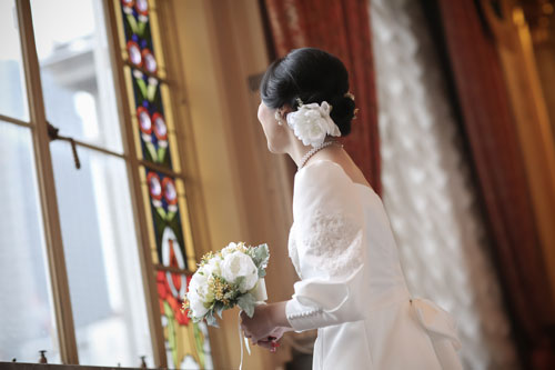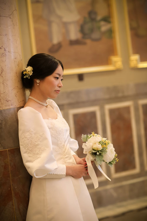 そこで今回、当店の教室でご自身の手で思い描いたウエディングドレスをお作りになり、出来上がったドレスで撮影会をされました。