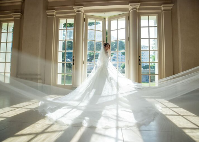 ベールがドレスに本当に良くお似合いです。