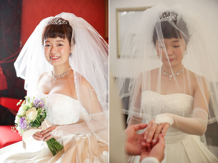 ご自身でベールをアレンジされて、全く違う雰囲気でお召しになるなんてとっても素敵です。