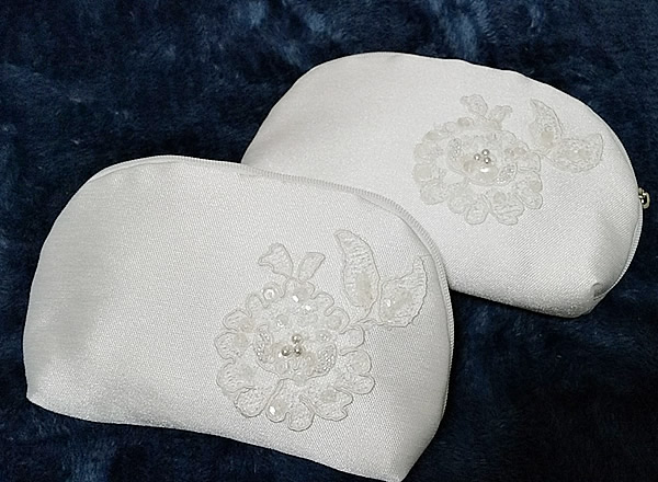 ポーチ二個、メモリアルベア、ぬいぐるみのドレス