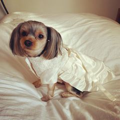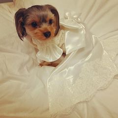 ウェディングドレスをわんちゃんのドレスにリメイクされたお客様から動画やお写真をたくさん頂きました!