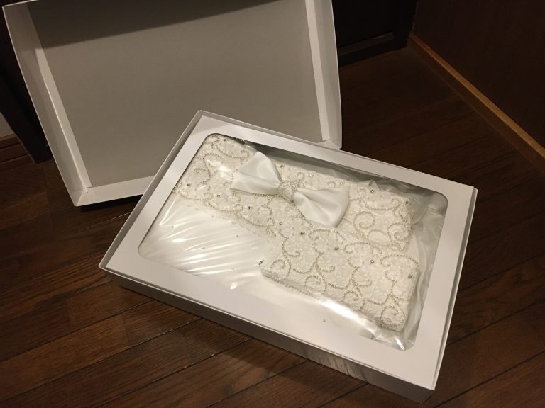出来上がってきたサブバッグと財布は私のドレスそのものでした!