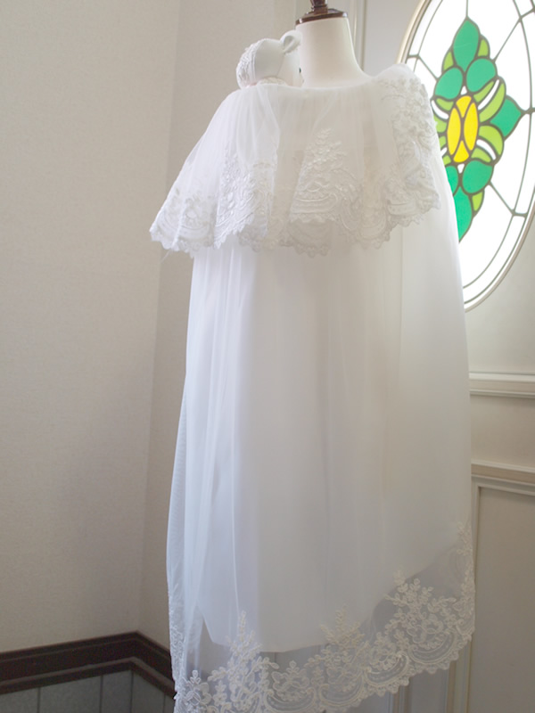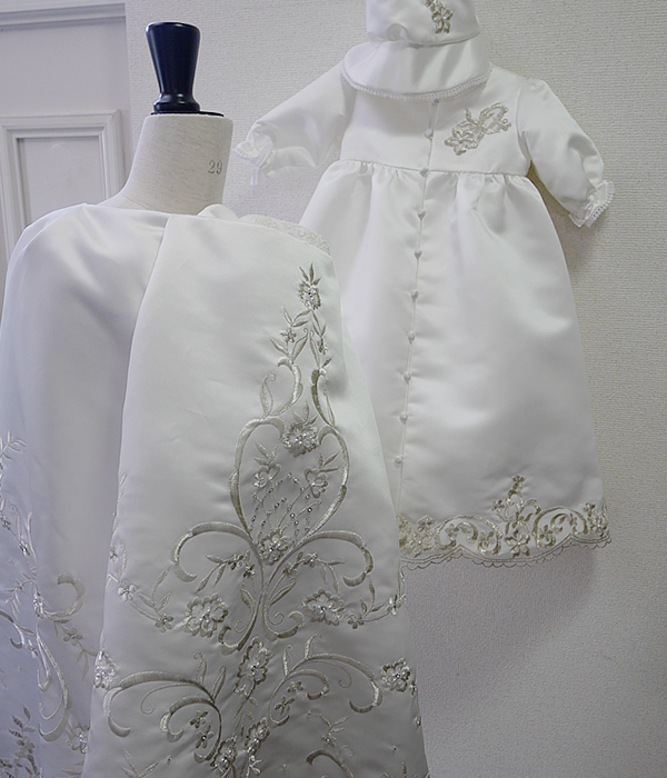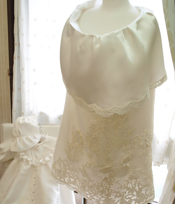ウェディングドレスは華やかなものが多いのでお宮参り用のケープにするととても華やかで素敵なものが出来ます。