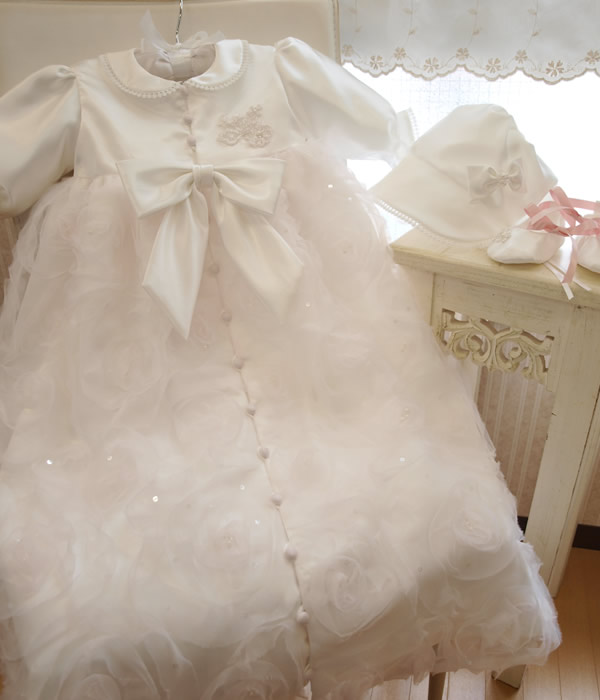 ベビー・子供・出産準備品 【ドレスリメイク】ふわふわ巻きバラのベビードレス