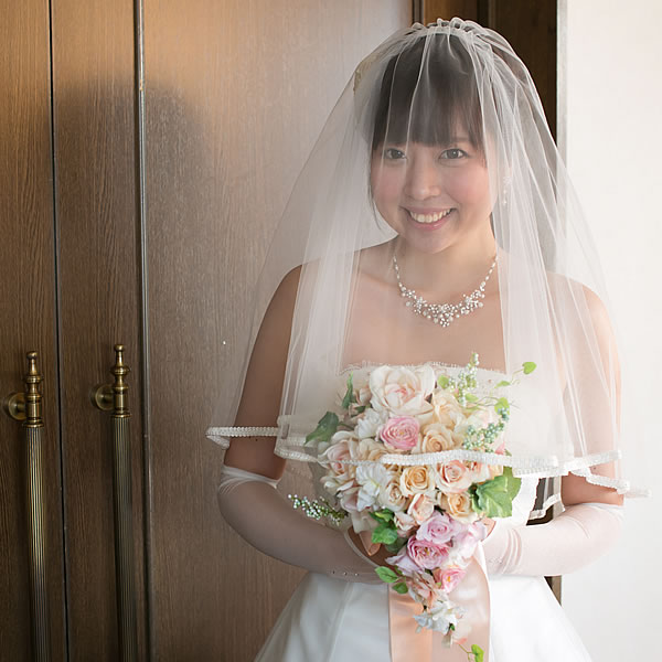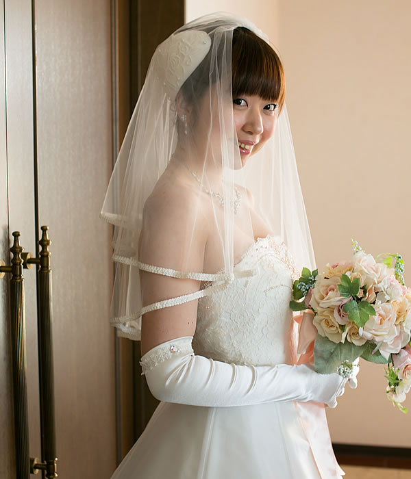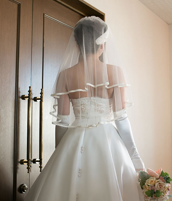 美しく編み込まれた模様のブレードをベール周囲にほどこしました。