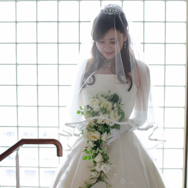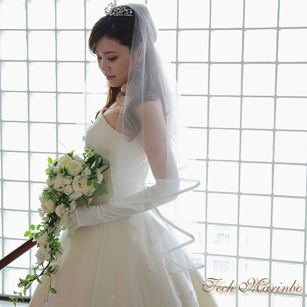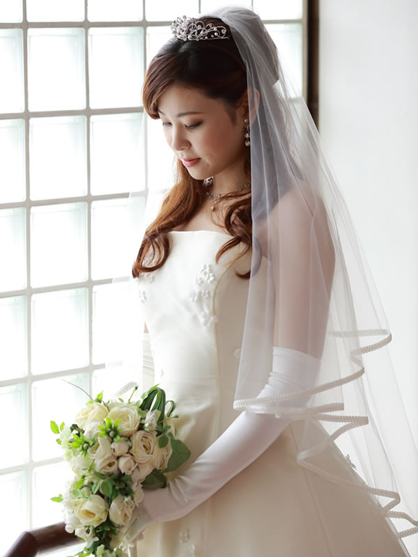 美しく編み込まれた模様のブレードをベール周囲に施しました。