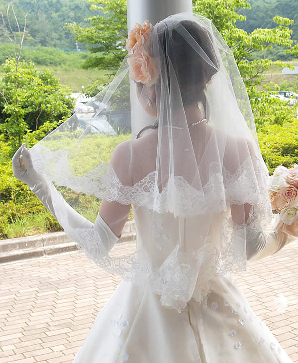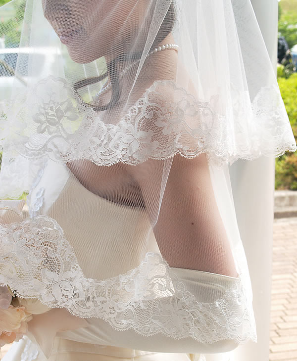 透明感があり、波のような動きが華やかでフェミニンなウェディングベールです。