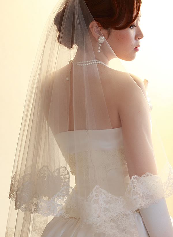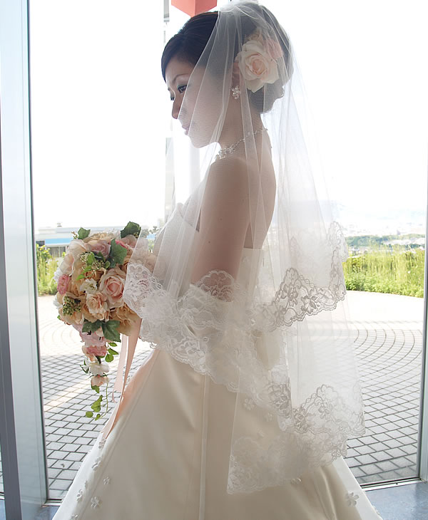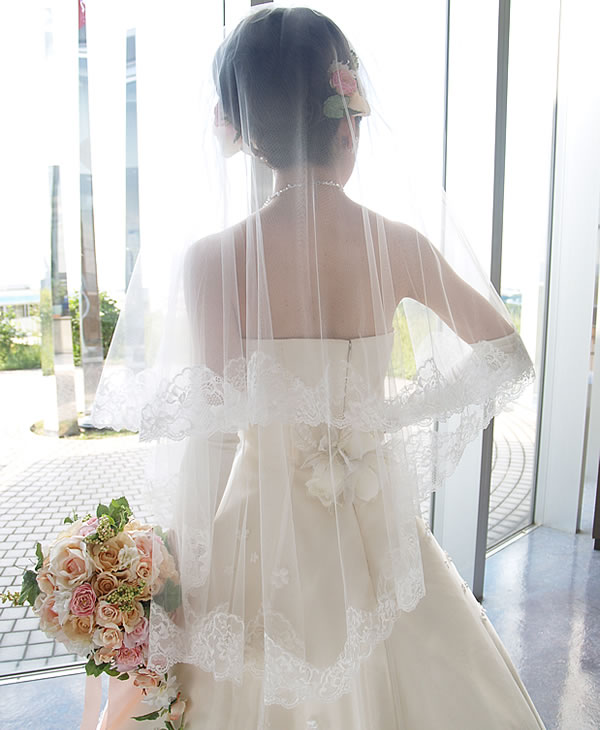 美しいお花の柄のレースをベールの周囲に施しました。