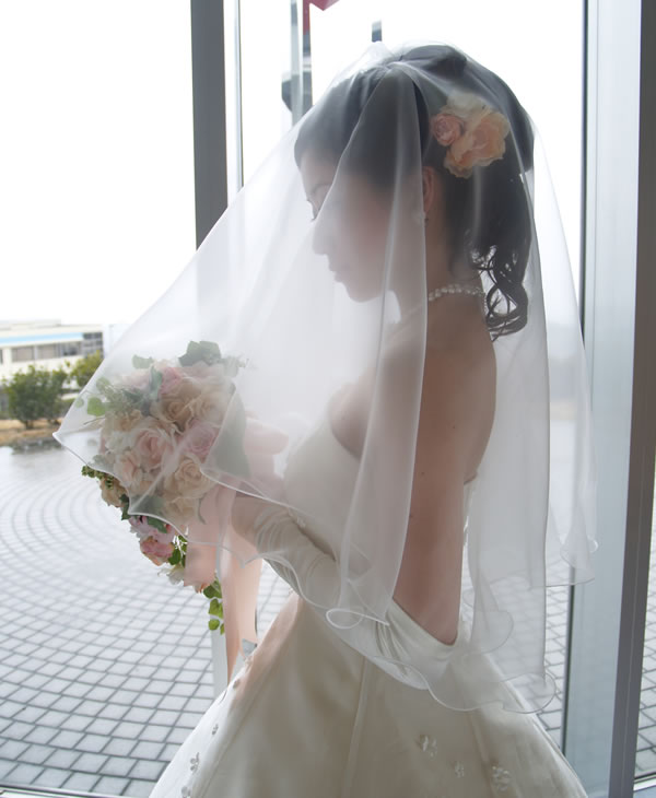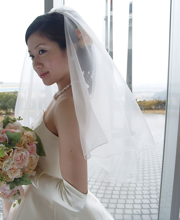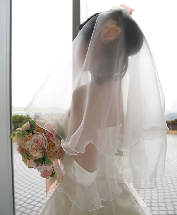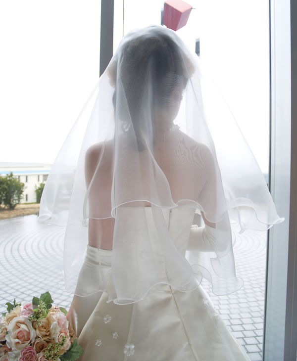 ベール素材としての定番、チュール素材を使用せず、グラスオーガンジーを使用したウエディングベールです。