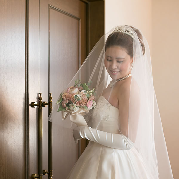どのようなドレスにもコーディネイトできるシンプルなウェディングベールです。