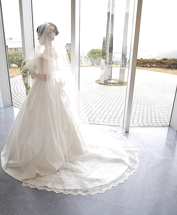 のようなドレスにもコーディネイトできるシンプルなロングベールです。