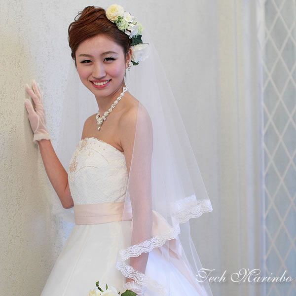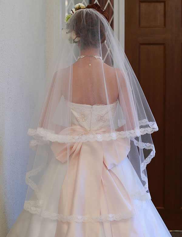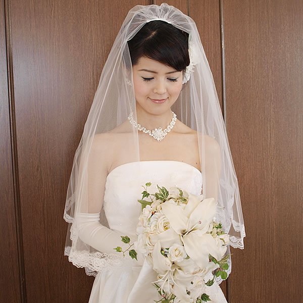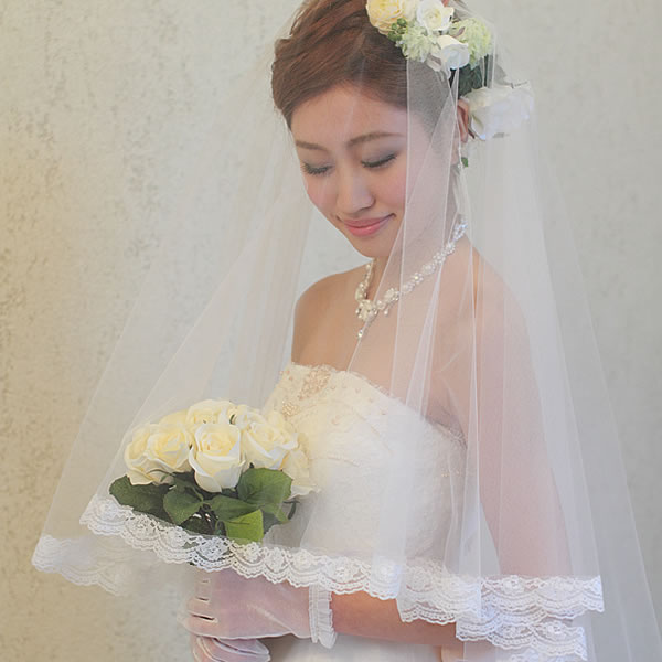 小さなフラワー柄の透明感あるレースをあしらったウエディングベール。