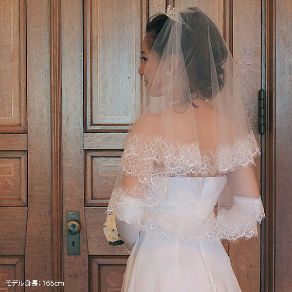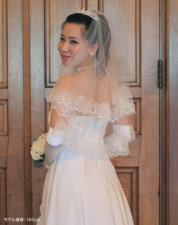 繊細で柔らかなリバーレースをほどこしたショートベール。