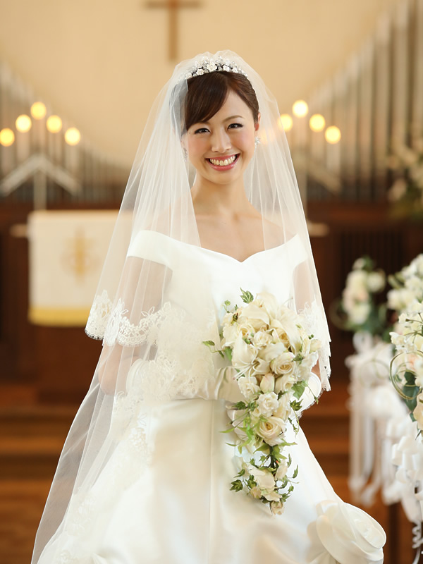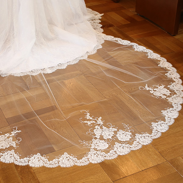 刺繍のステッチで華やかさを加えた存在感のあるロングベール。