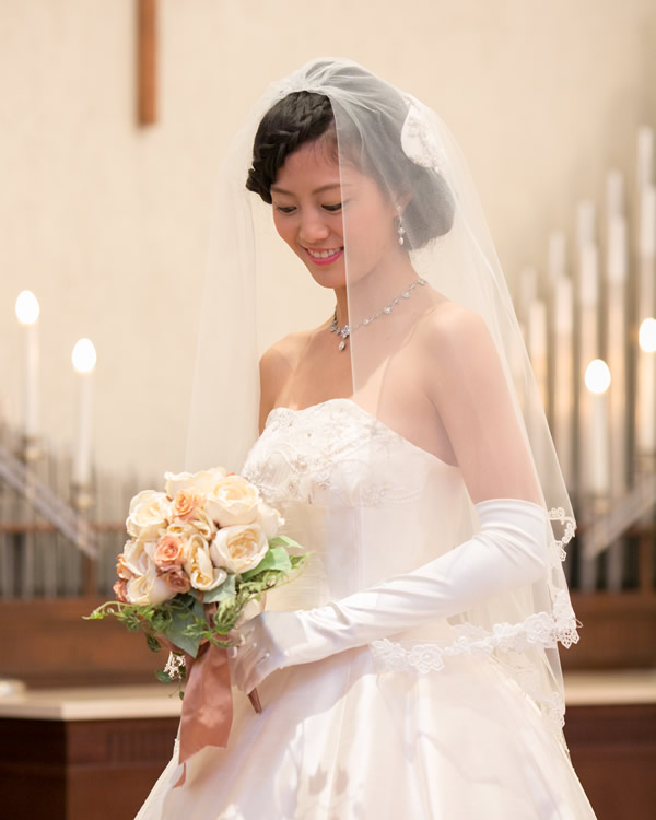 大人のかわいさが溢れるロマンティックなフェイスアップベール。