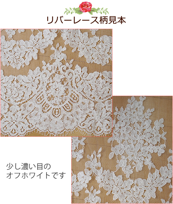 存在感のあるクラシカルな柄のリバーレースは、レースのカットや配置によって様々なデザインからお選び頂けます。下記のデザインは一部のご紹介です。
