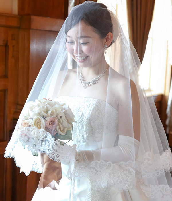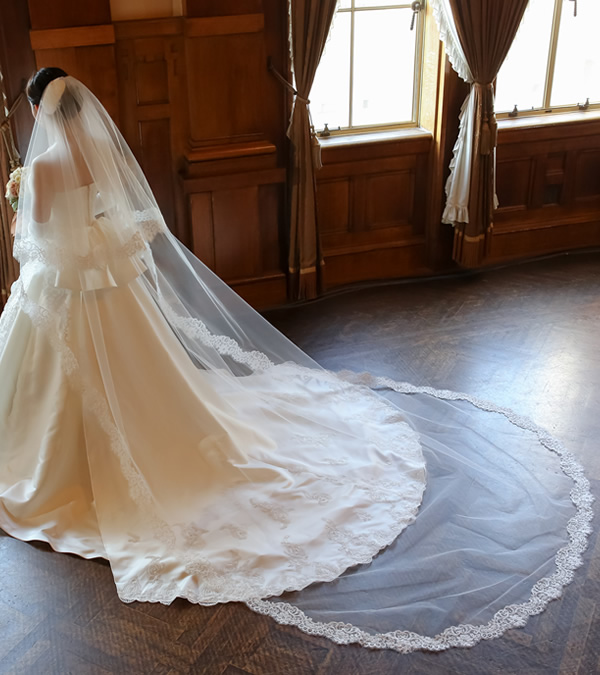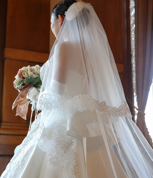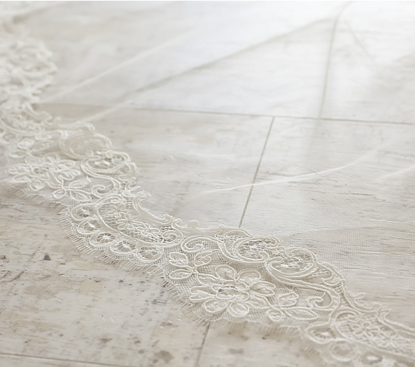 適度なレース巾がありますので比較的どんなドレスにも合わせやすいウェディングベールです。