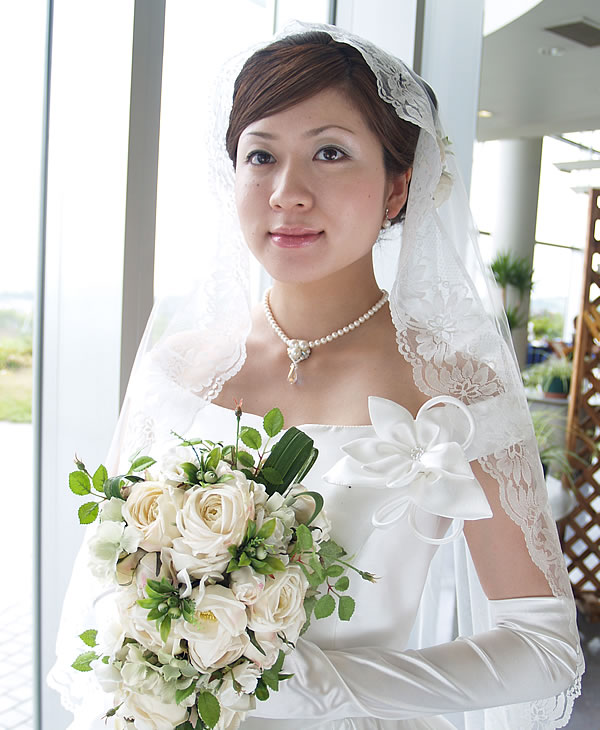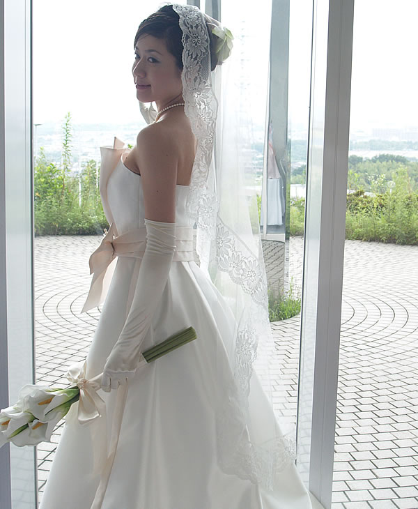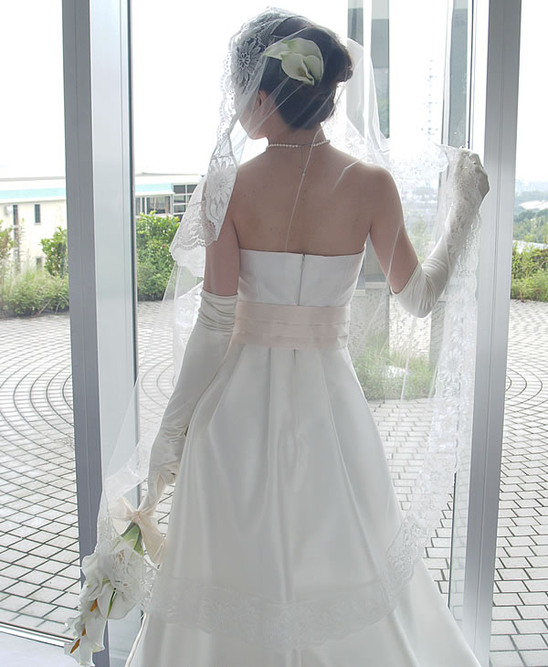 9.5cm幅の豪華なレースでベール周囲をほどこしました。