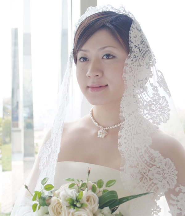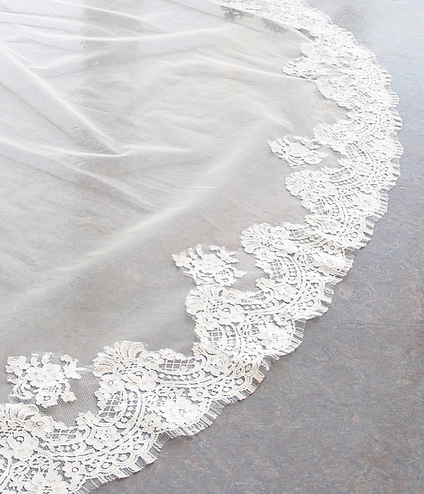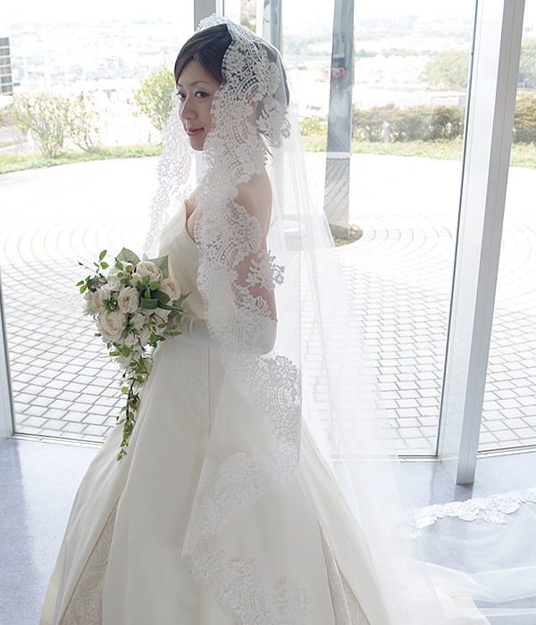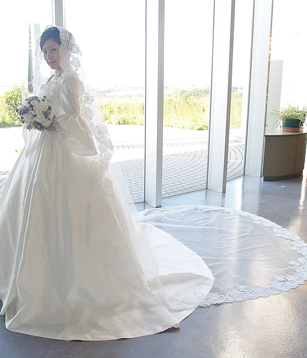 クラシカルな模様が美しいフランス製リバーレースを使用したロングマリアベール。