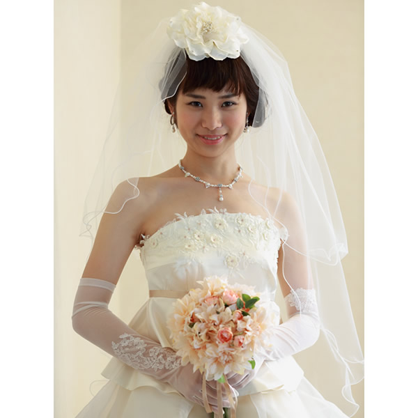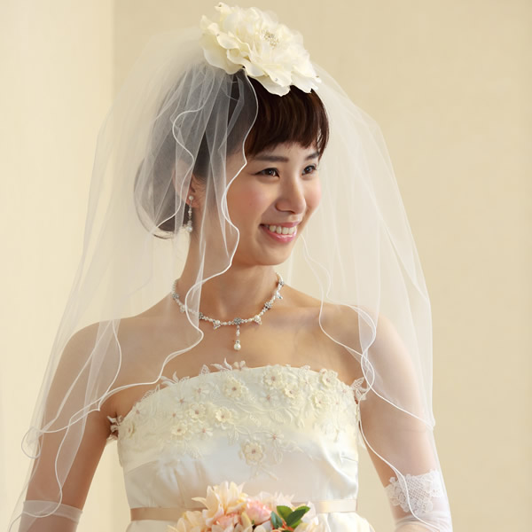 ふわふわしたメロウベールがお顔周りに華やぎ感をプラスします。