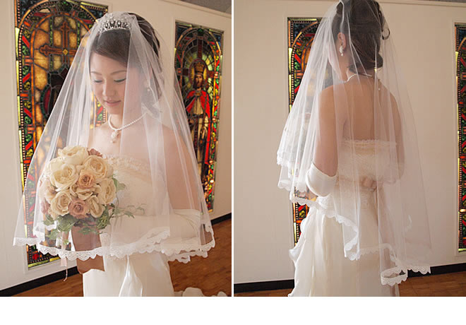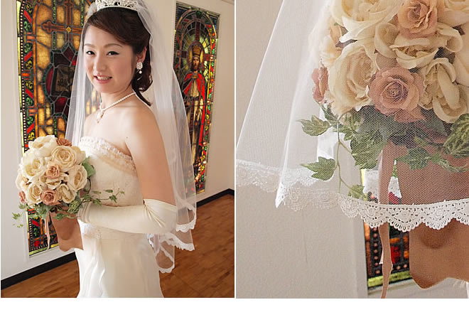 さりげない細幅レースは、ドレスを選ばず合わせて頂きやすいベールです。