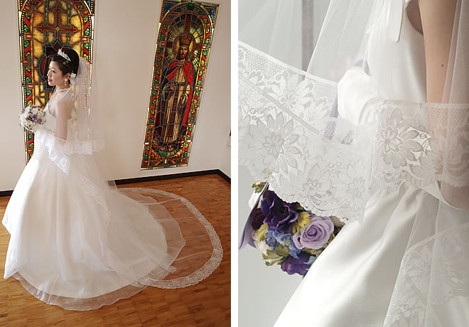 9.5cm幅の豪華なレースをベール周囲にほどこました。