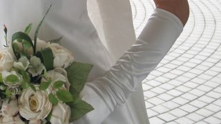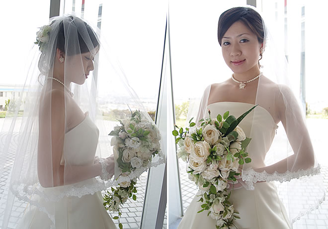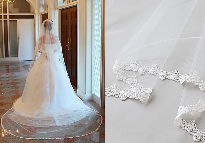 後姿が際立つクラシカルなロングベールは教会式にぴったりです。